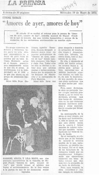 Amores de ayer, amores de hoy" [artículo] Yolanda Montecinos.