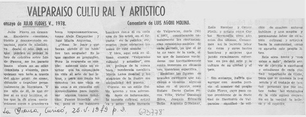 Valparaíso cultural y artístico [artículo] Luis Agoni Molina.