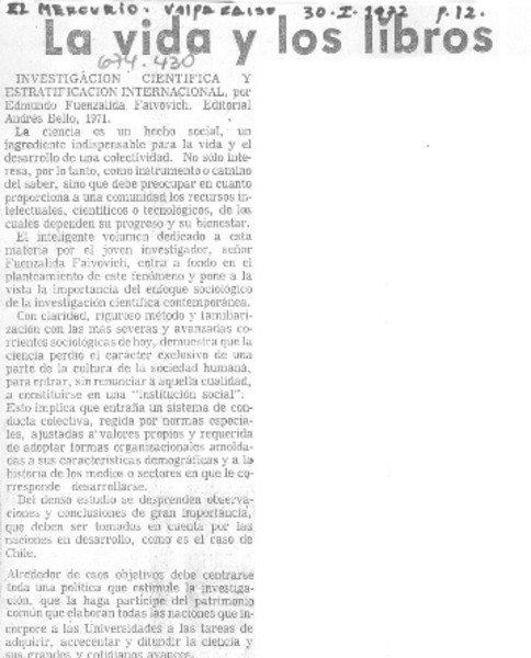 Autores chilenos - Fuenzalida Faivovich, Edmundo - Investigación científica y estratificación internacional