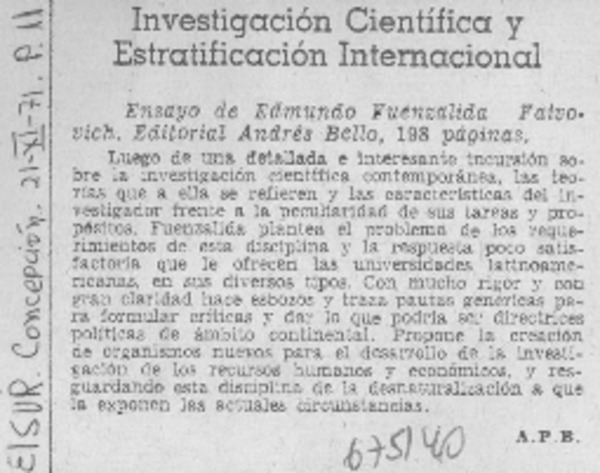 Investigación científica y estratificación internacional [artículo] A. P. B.