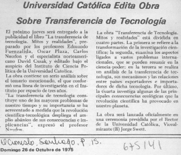 Autores chilenos - Fuenzalida Faivovich, Edmundo - Transferencias de tecnología: mitos y realidades