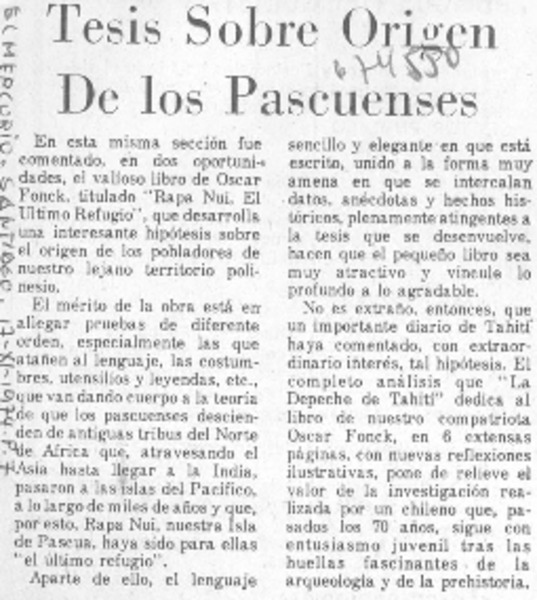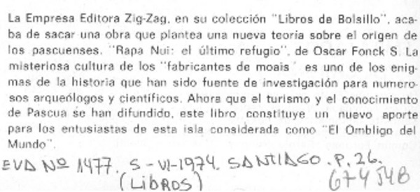 Rapa Nui, el último refugio, Oscar Fonk [artículo] Claudio Solar