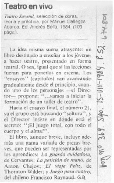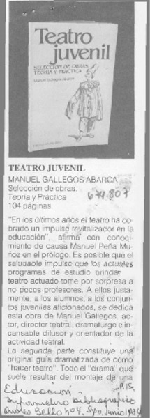 Teatro juvenil [artículo] Gerardo Ruiz Betancourt.