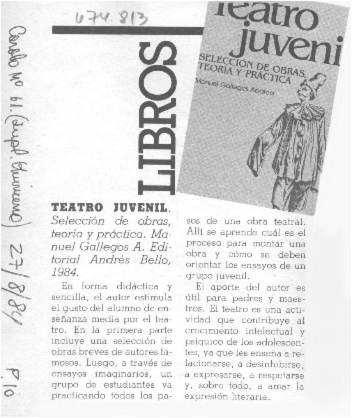 Teatro juvenil de Manuel Gallegos [artículo] Efraín Szmulewicz.