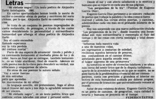 Mi elefante negro" [artículo] Federico Tatter.