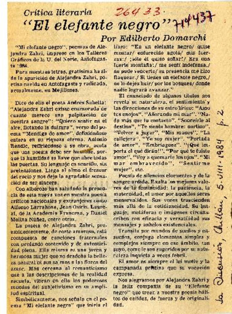 Autoras chilenas - Zarhi, Alejandra - Mi elefante negro