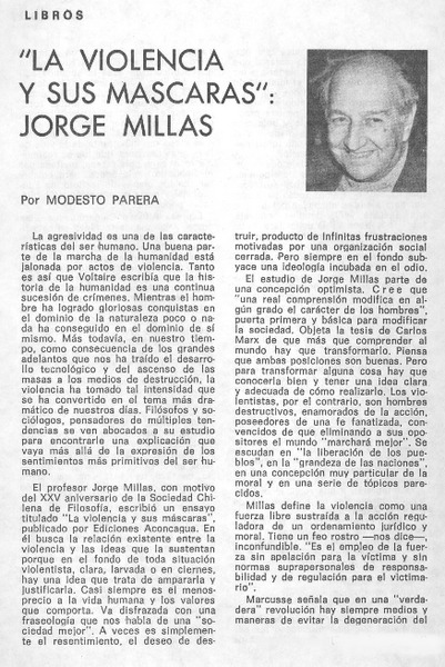 Autores chilenos - Millas, Jorge - Violencia y sus máscaras