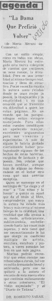 "La dama que prefirió volver" [artículo] Roberto Sarah.