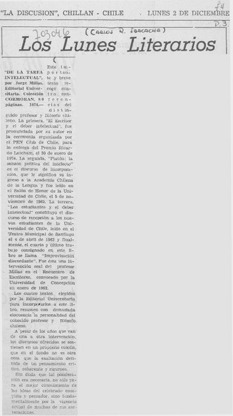 Millas, Jorge - Autores chilenos - De la tarea intelectual