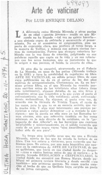 Arte de vaticinar [artículo] Luis Enrique Délano.