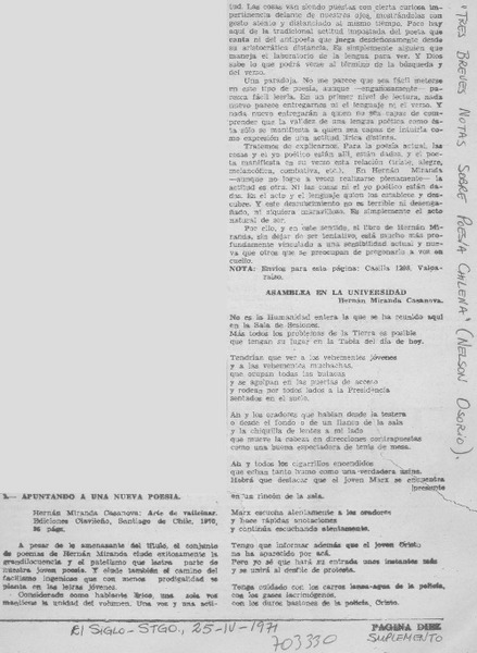 Apuntando a una nueva poesía [artículo] Nelson Osorio.