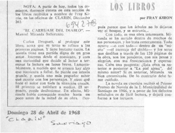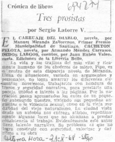 M. Miranda Sallorenzo: el carruaje del diablo [artículo] Jose Promis.