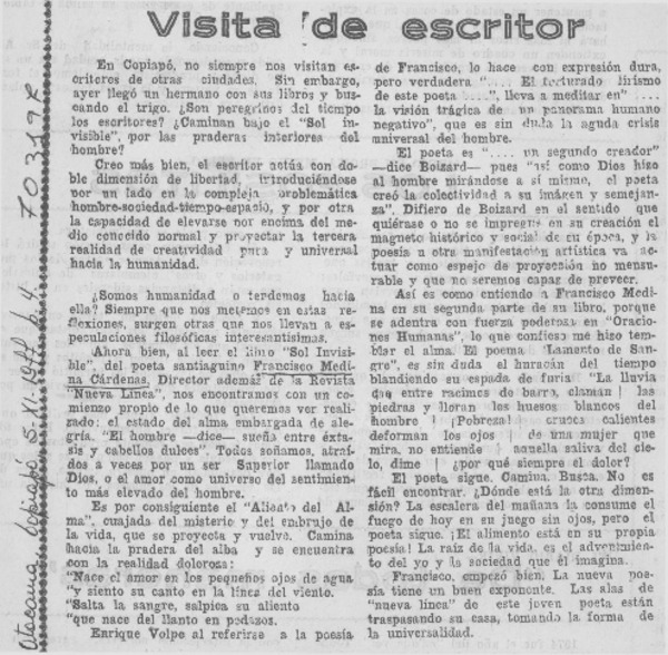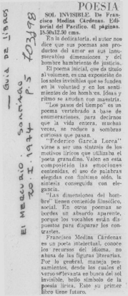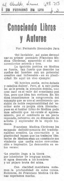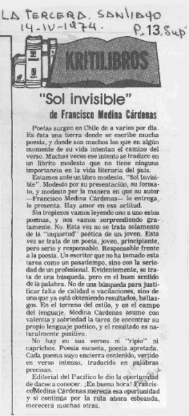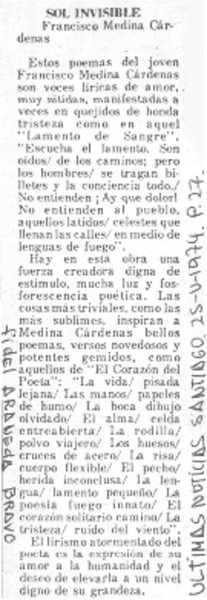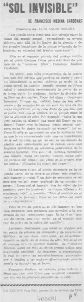 Sol invisible [artículo] Francisco Medina Cárdenas.