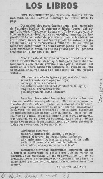 Sol invisible [artículo] Alberto Arraño.