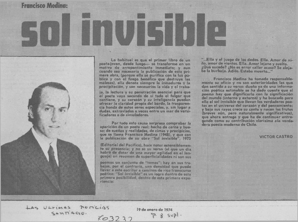 Sol invisible [artículo] Víctor Castro.