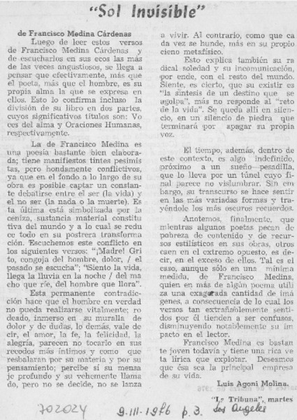 Sol invisible [artículo] Luis Agoni Molina.
