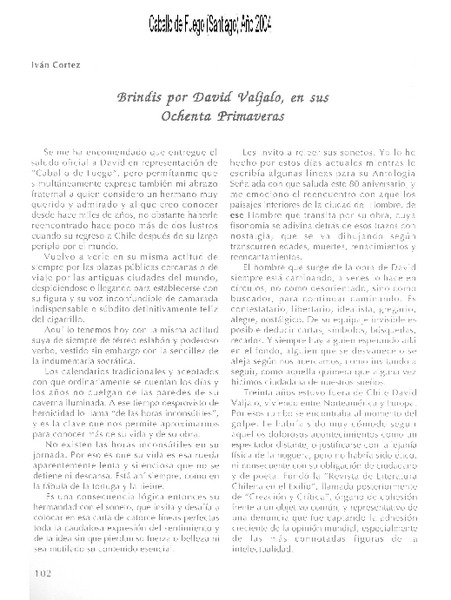 Brindis por David Valjalo, en sus ochenta primaveras [artículo] Iván Cortez.