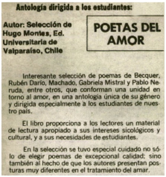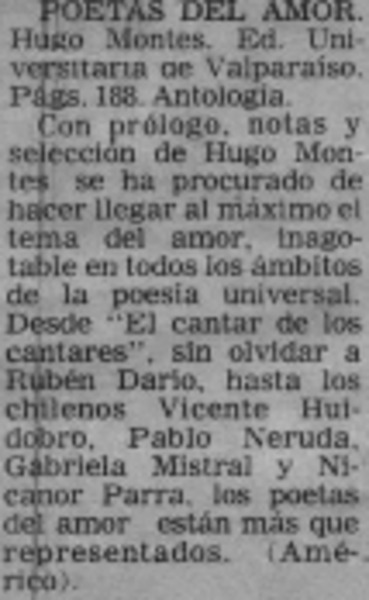 Autores chilenos - Montes, Hugo - Poetas del amor