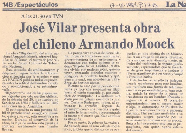 José Vilar presenta obra del chileno Armando Moock. [artículo]