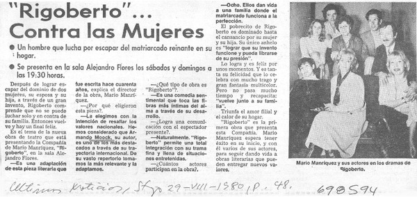 Rigoberto", cuarentón que lucha contra el matriarcado. [artículo]