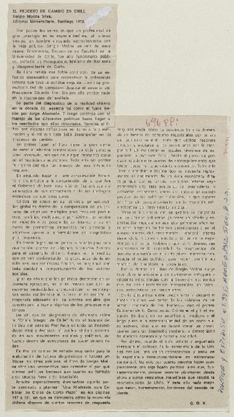 Autores chilenos - Molina, Sergio - Proceso de cambio en Chile