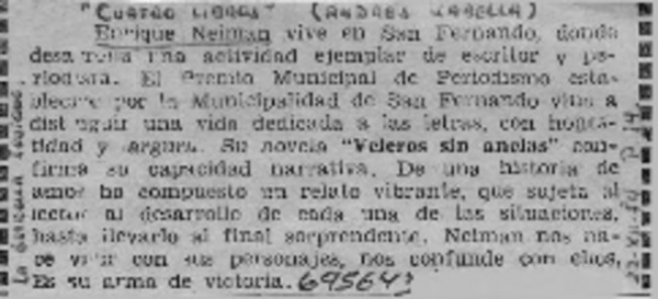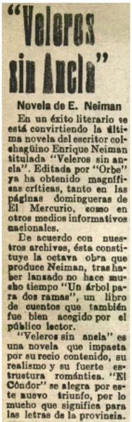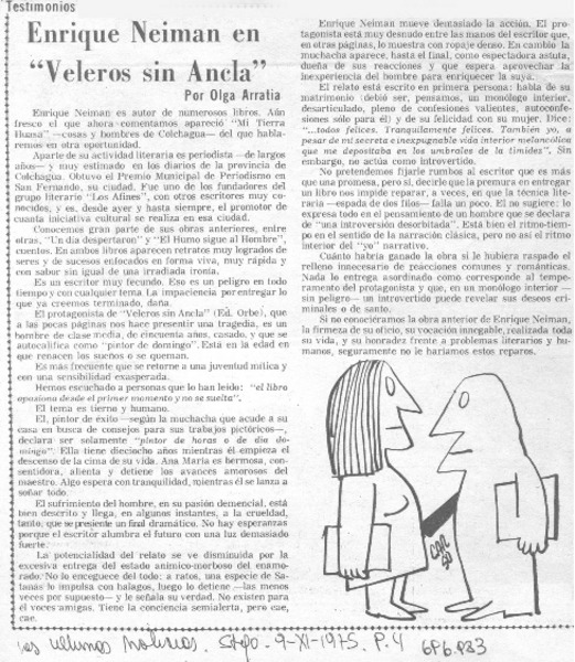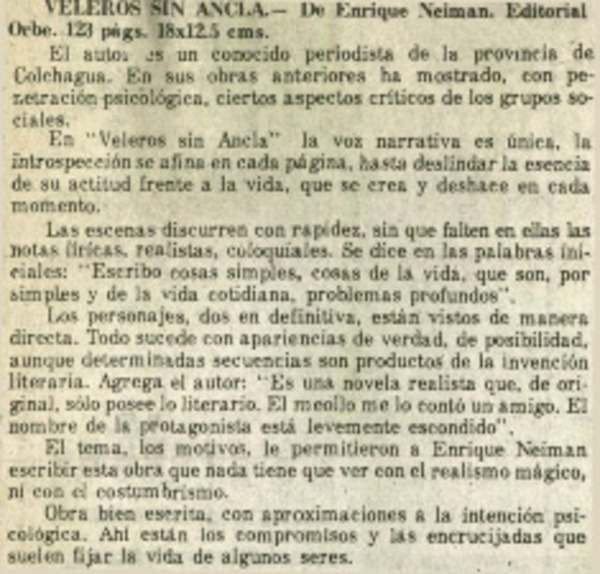 Enrique Neiman en "Veleros sin ancla" [artículo] Olga Arratia.