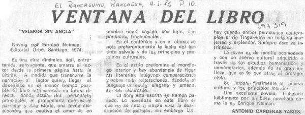 Veleros sin ancla [artículo] Antonio Cárdenas Tabies.