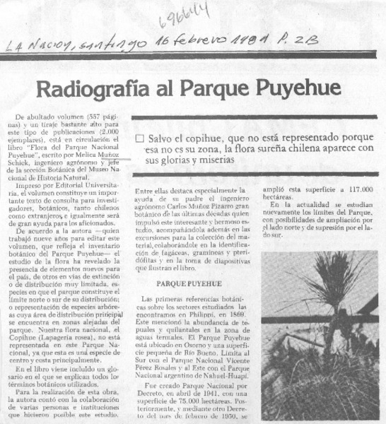 Flora del parque nacional Puyehue [artículo] Basilio Georgudis Maya.