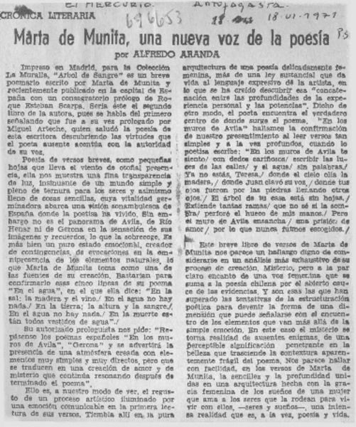 Marta de Munita, una nueva voz de la poesía [artículo] Alfredo Aranda.