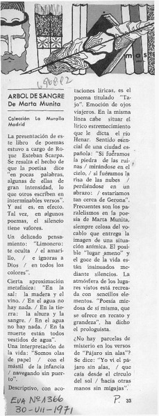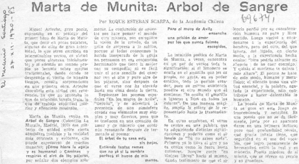 Marta de Munita: Arbol de sangre [artículo] Roque Esteban Scarpa.