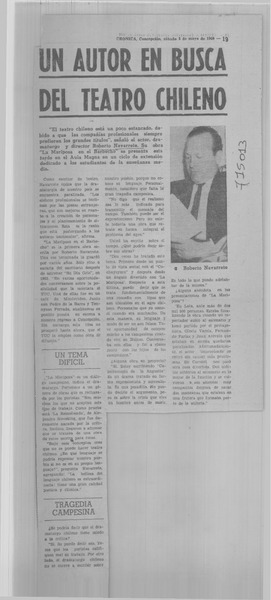 "Hora cero" estreno del teatro penquista. [artículo]