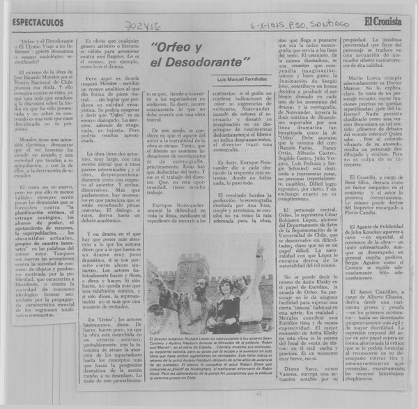 Listo el estreno de "Orfeo y el desodorante". [artículo]