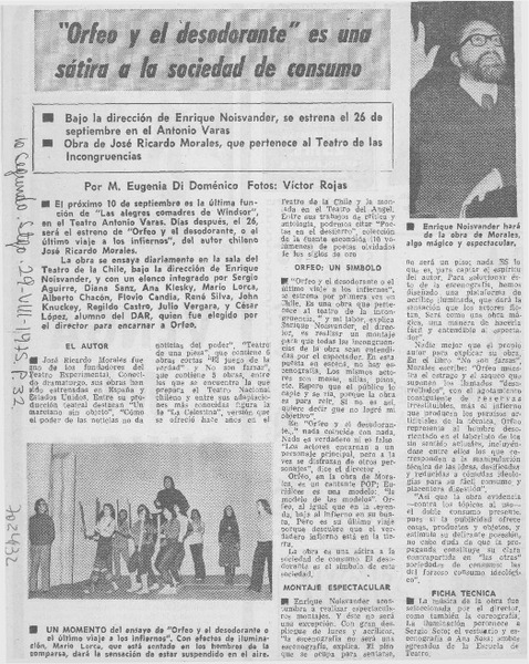 "Orfeo y el desodorante" es una sátira a la sociedad de consumo. [artículo] M. Eugenia Di Doménico.