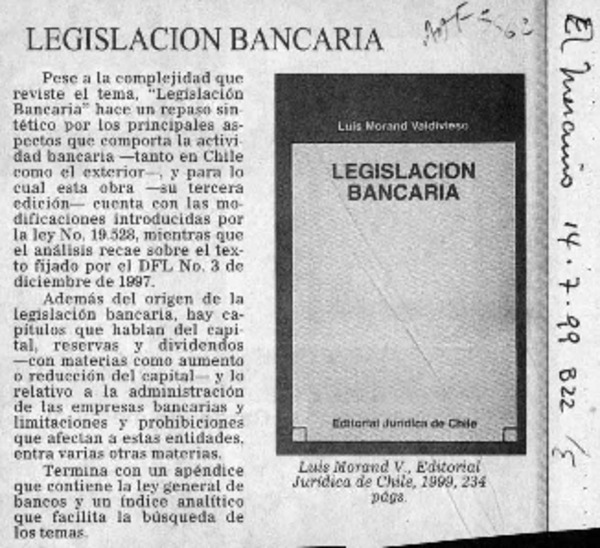 Autores chilenos - Legislación bancaria - Morand, Luis