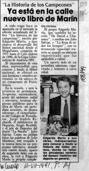 Periodista Marín lanzó libro de historia del fútbol. [artículo]