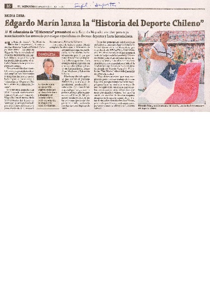 Edgardo Marín lanza la "Historia del deporte chileno" [artículo].
