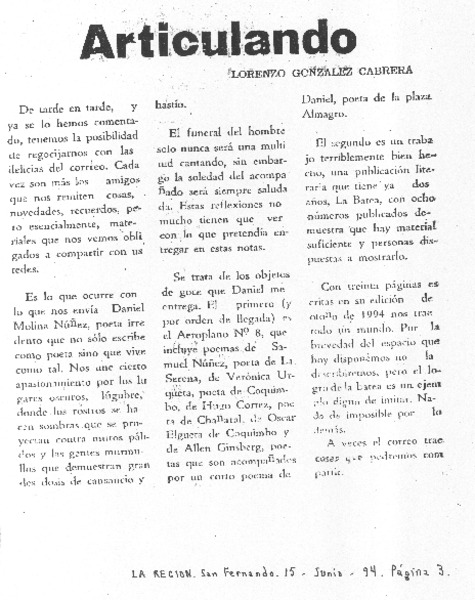 Articulando [artículo] Lorenzo González Cabrera.