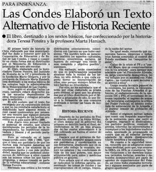 Las Condes elaboró un texto alternativo de historia reciente [artículo].