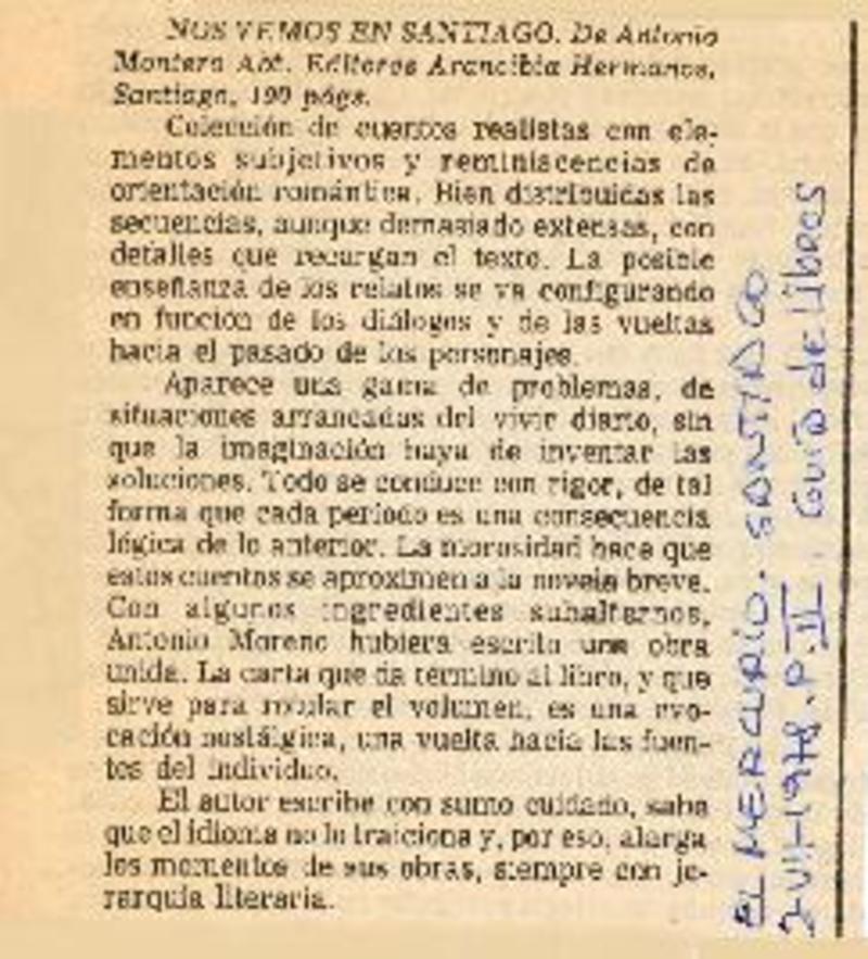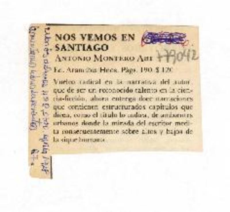 Autores chilenos - Montero Abt, Antonio - Nos vemos en Santiago
