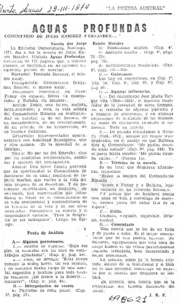 Jorge Rubén Morales, Aguas profundas [artículo] Hernán del Solar.