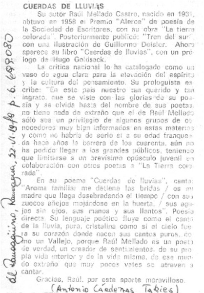 Cuerdas de lluvia [artículo] Antonio Cárdenas Tabies.