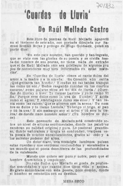 Autores chilenos - Mellado, Raúl - Cuerdas de lluvias