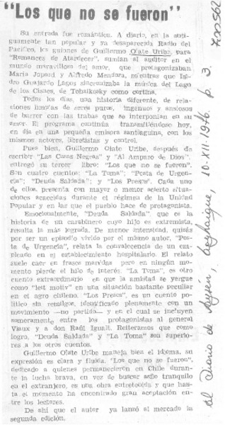 Los que no se fueron", o la historia por dentro [artículo] Hugo Goldsack.
