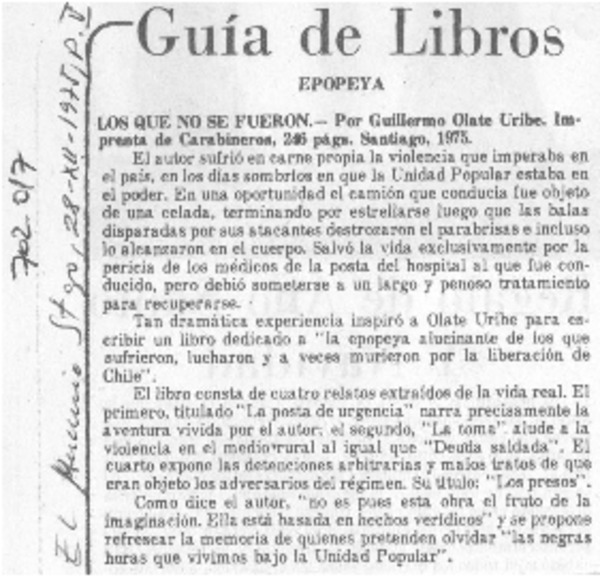 Los que no se fueron - Olate Uribe, Guillermo - Autores chilenos