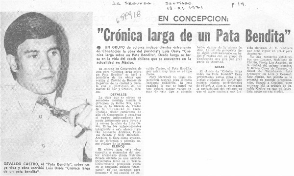Autores chilenos - Crónica larga sobre un pata bendita - Osses, Luis