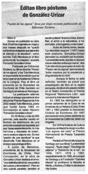 Pasión de los signos - Autores chilenos - González-Urizar, Fernando