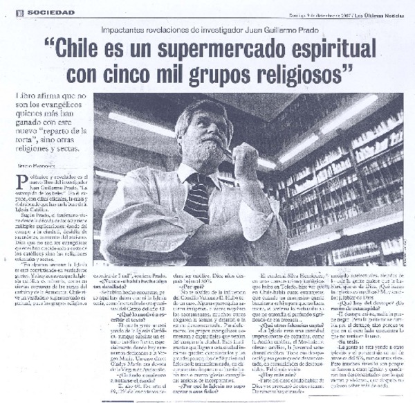 "Chile es un supermercado espiritual con cinco mil religiosos" [artículo] Sergio Mardones.,