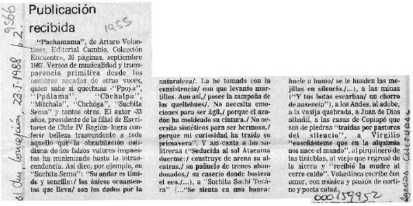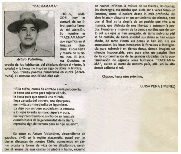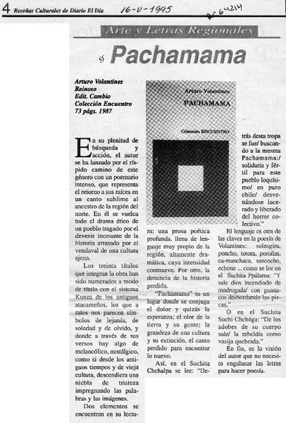 "Pachamama", del poeta Arturo Volantines [artículo].