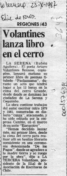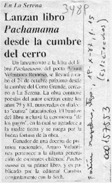 Lanzan libro "Pachamama" desde la cumbre del cerro [artículo].