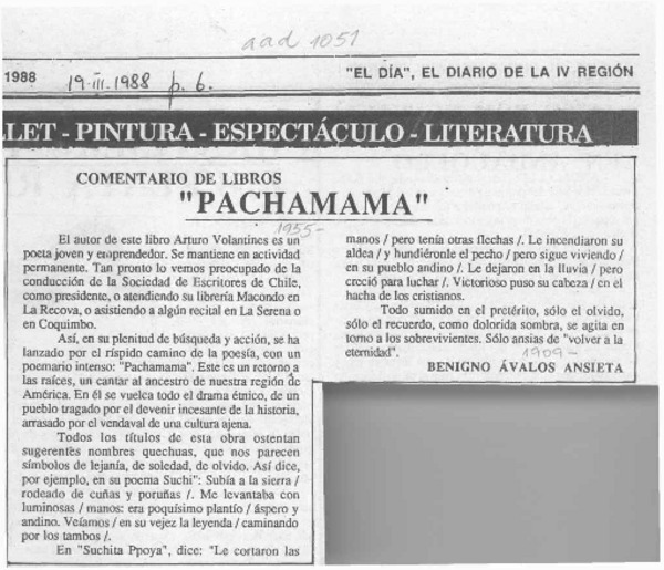 "Pachamama" [artículo] Benigno Avalos Ansieta.